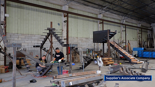 Video in tempo reale della fabbrica di scale a forma di L.